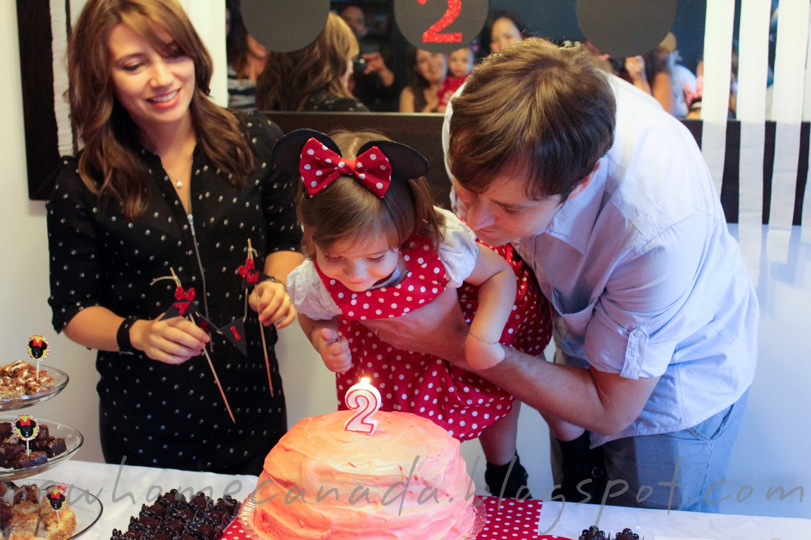 Our party in celebration of alice's 2 years was very Canadian-Brazilian style hehehe. Canadians do not make wedding style parties / super productions for children, as many do in Brazil. The party takes place in the family home or somewhere rented (schools, community centers etc.) and last a maximum of 3 hours. In our case, although we are in a rhythm of change already, we set up the house and decorate with one of Alice's favorite characters, Minnie and yes, the party lasted well over 3 hours. All made by ourselves, well handmade.