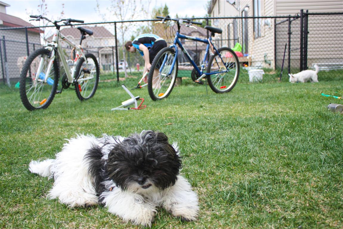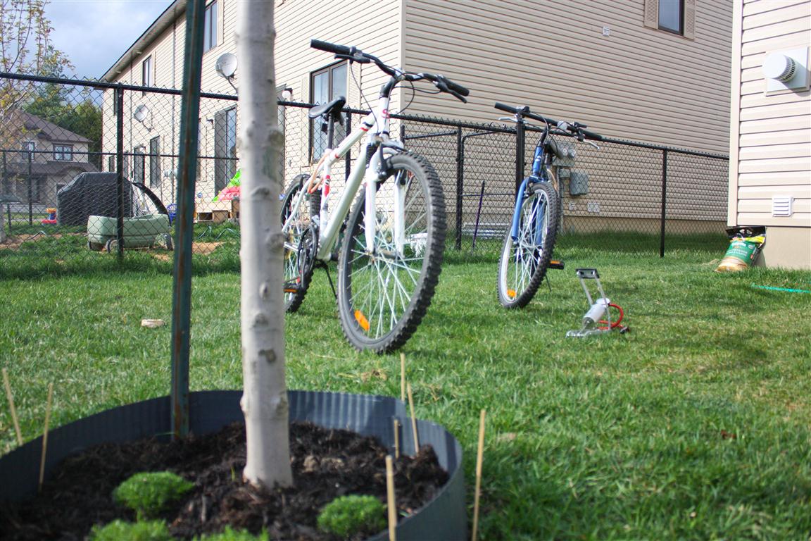 Finalmente arrumamos as bikes, até volta no “bairro” eu dei…
