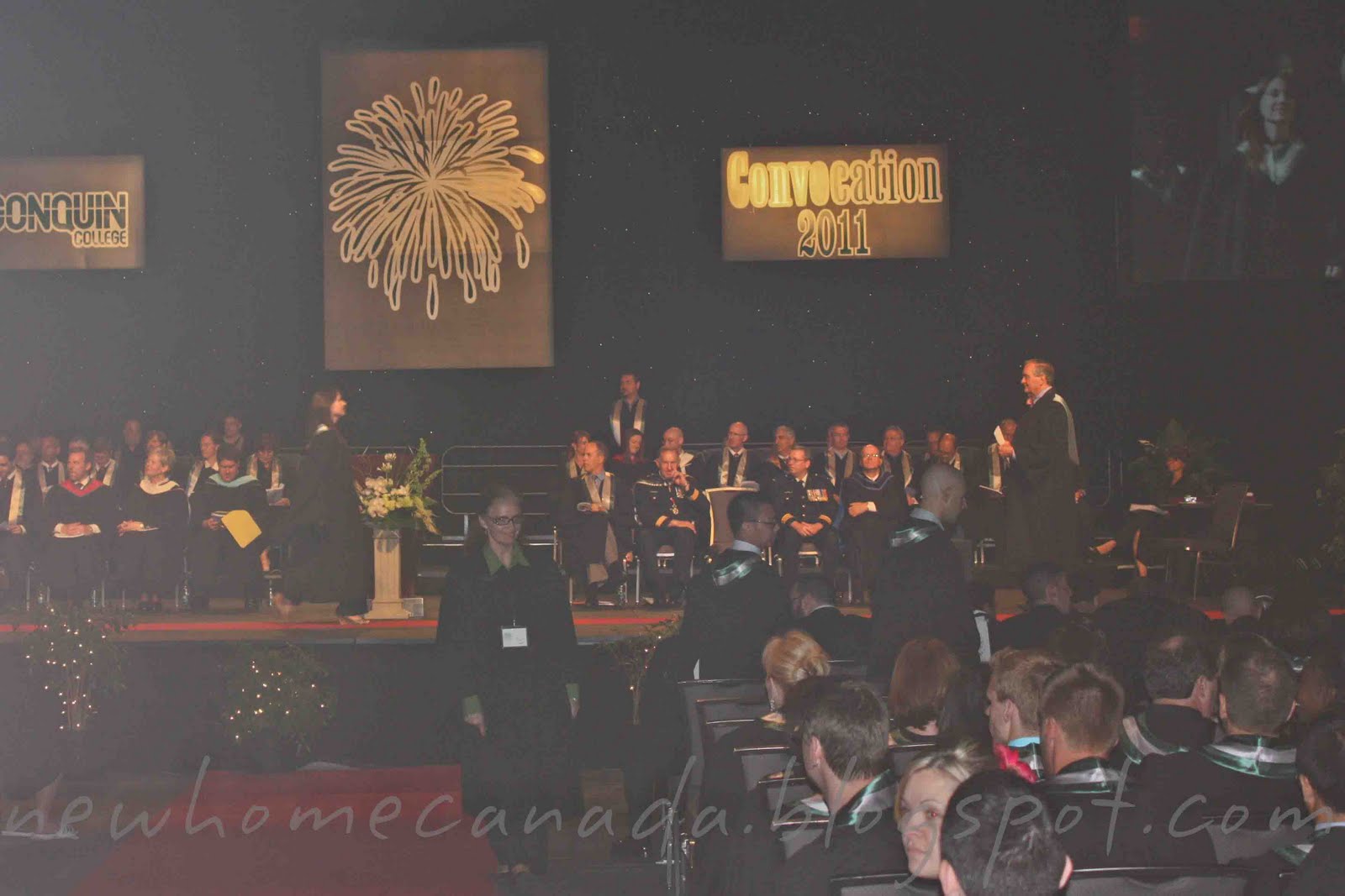 Ontem foi dia da minha formatura (oficial) do curso. Eu nem estava dando muita importância pra cerimônia, que não era obrigátoria nem nada, mas acabei decidindo ir, só pra marcar o momento. E acabou sendo um evento maior (e melhor) que o esperado, e eu achando que era ir só lá pegar o diploma e ir pra casa…hehe. Acabou que tinha cerca de 500 alunos pra receberem o diploma, sendo chamados um a um no palco, de toga e tudo! O evento foi no novo Ottawa Convention Centre e durou cerca de 4 horas.