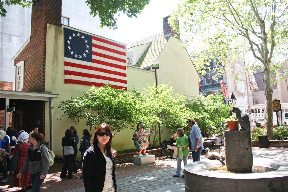 Ah, sim, foi ela que confeccionou a primeira bandeira americana. Igual aquela ali atrás oh…